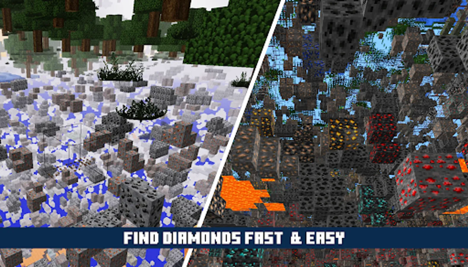 This mobile Android app makes it easy to download and install the X-Ray Mod, a cheat that allows you to see through walls and other obstacles, revealing valuable resources like diamonds, hidden chest and underground mob easily'