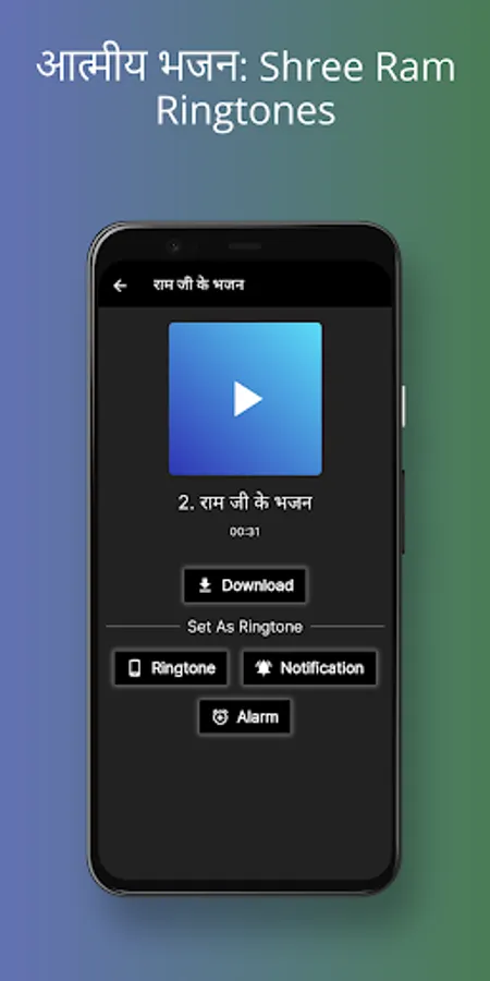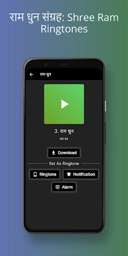 Download the "Shree Ram Ringtone" application effortlessly and experience the power of divine music at your fingertips. With this user-friendly application, it's easy to download and set the "Shree Ram Ringtone" as your preferred ringtone, making it a convenient choice for all devotees. Enjoy the simplicity of setting this melodious ringtone and carry the essence of devotion wherever you go.