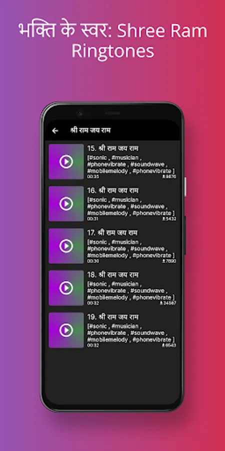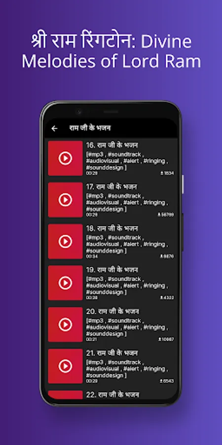 The "Shree Ram Ringtone" application is not just a sound but a gateway to a world of divine love and devotion. Its powerful vibrations and melodious symphony have the ability to uplift your spirits and awaken your soul. Let the divine presence of Lord Ram guide and protect you on your journey.