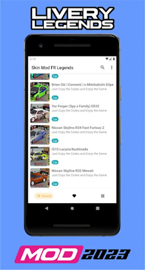 What we have done is Livery Skin Fr Legend in this application including the Garage Drift livery, Tokyo drift, fast angry 2, fast angry 1, most wanted, formula drift etc. There are also car-based livery like the Nissan Skyline (R34, R33, R32), Nissan GTR, Nissan Silvia (S15, S14, S13), Nissan 350z, Nissan 200SX, Mustang Hoonigan, Livery Fr legends r34, supra, s15, gt86, rx7