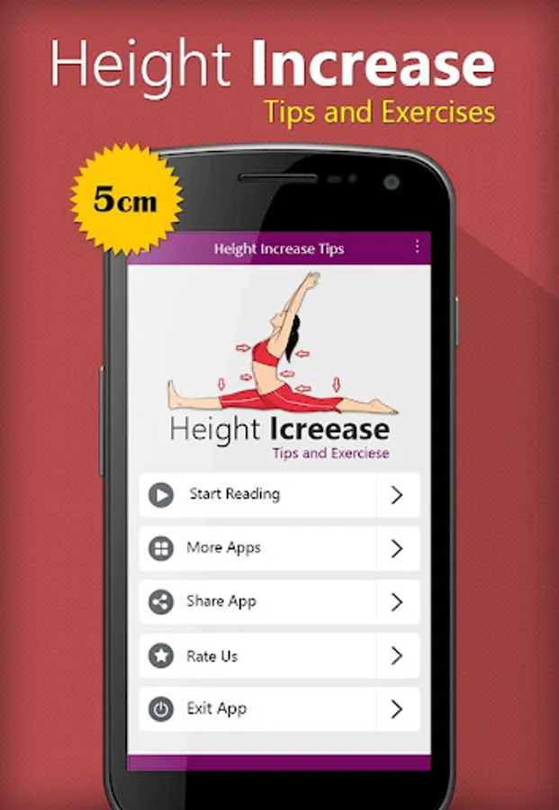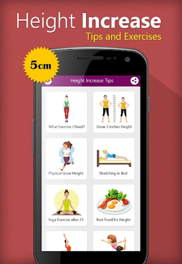 In Height Increasing Tips and Exercise app you will get complete information on how to achieve good height with exercise examples.