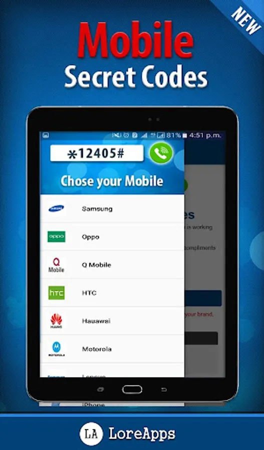 All Mobile Secret Codes application include the android secret codes for all mobile devices and Tabs and other android machines.