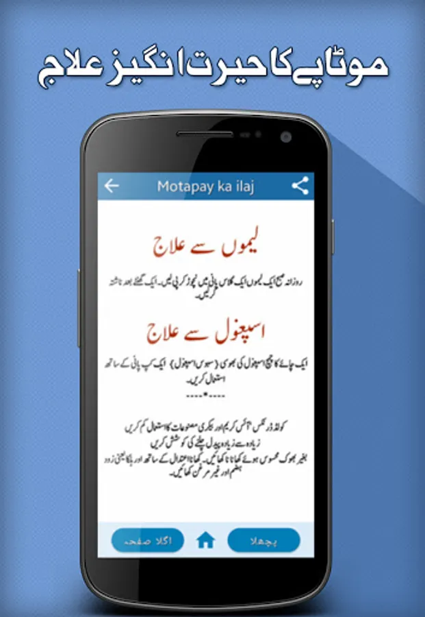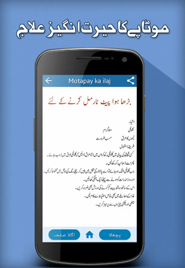 Motapay ka ilaj is a best app for the weight lose in Urdu.