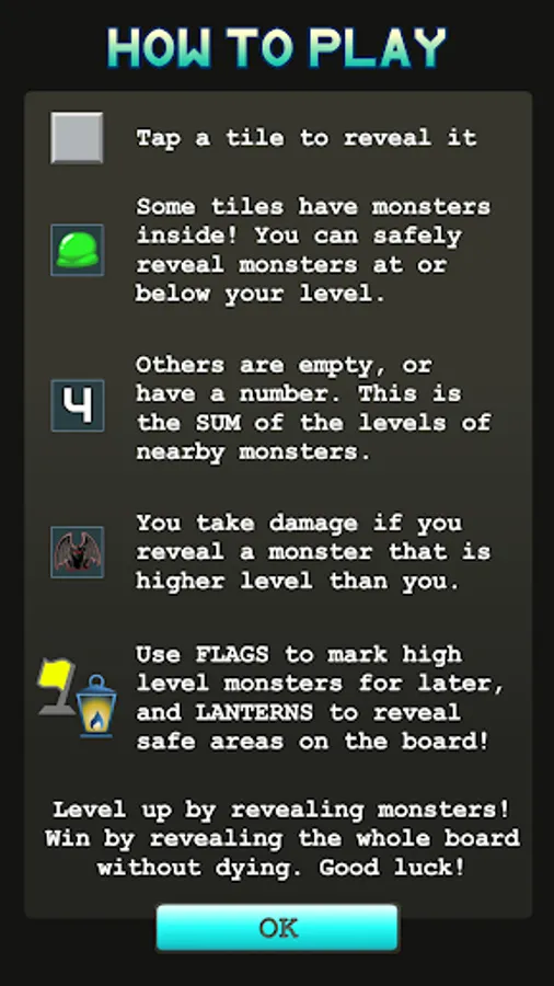 Dungeon Sweeper adds depth and complexity using minesweeping mechanics, making a game that is easier and more accessible to learn, but just as challenging to master. The scoring system rewards perfect play, while HP and Leveling mechanics help you learn and allow for mistakes.