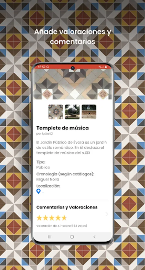 Register, create your profile, and share your contributions with the community. In addition, you will be able to save your favorite mosaics, and make comments or public evaluations.