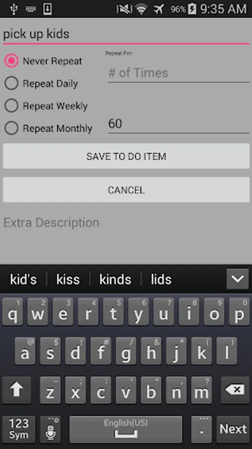 -Edit the to do item to make them important, mark them complete, add a time, or change the title