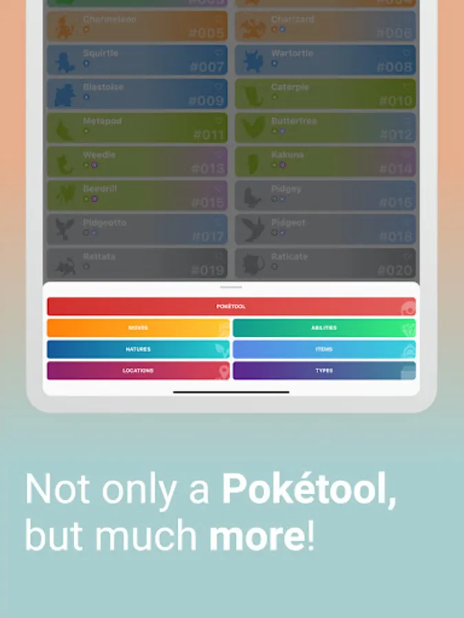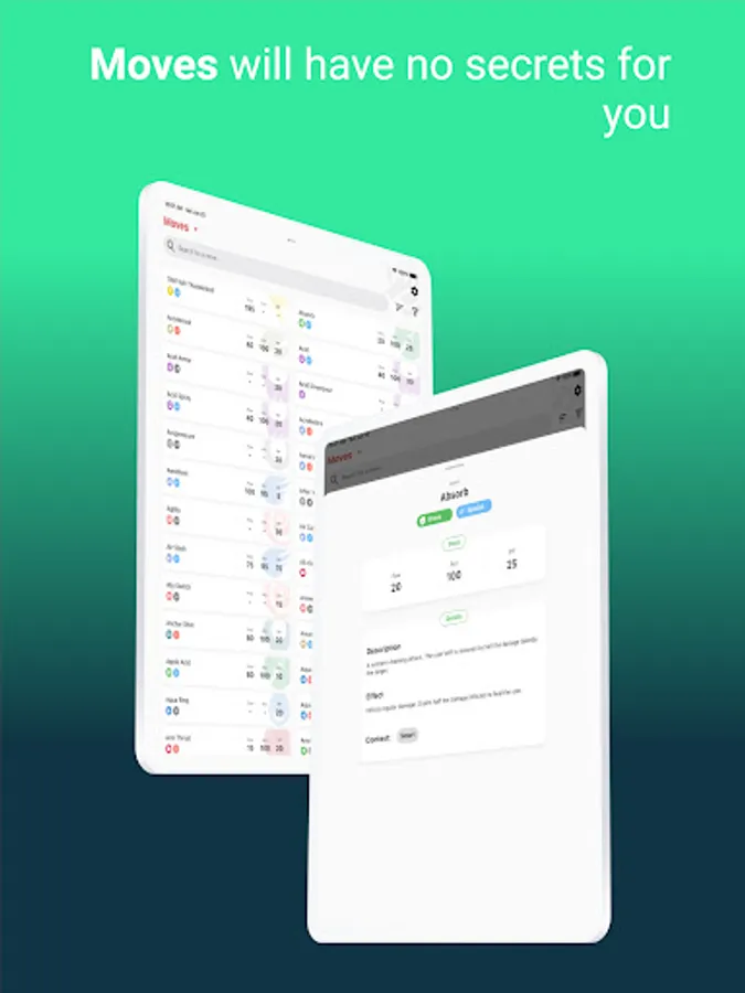 ▶ Detailed Information: Access to comprehensive details on creatures, moves, abilities, natures, items locations, and types.