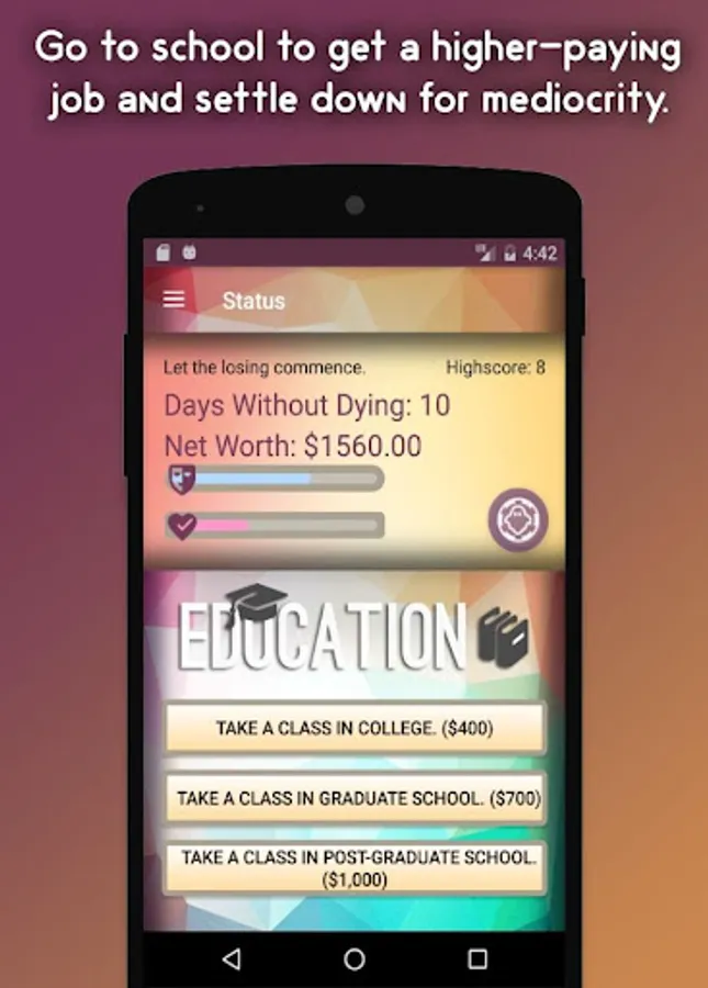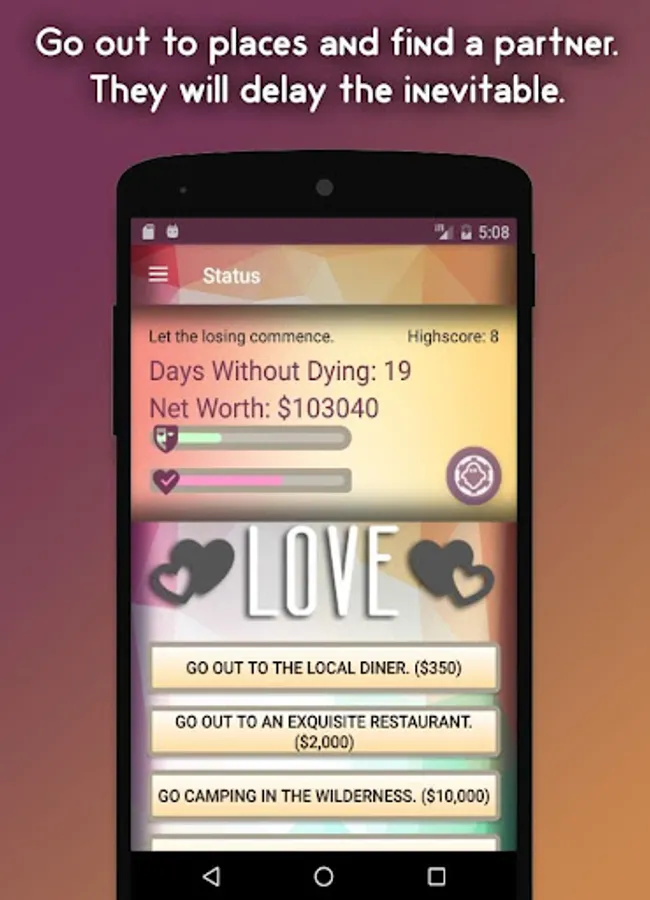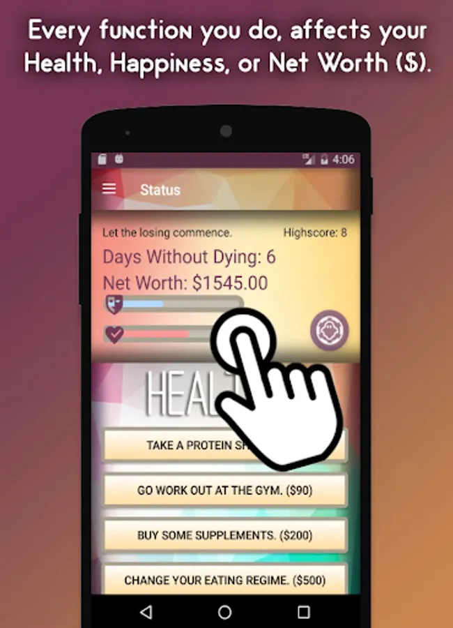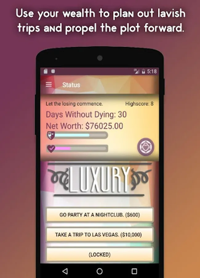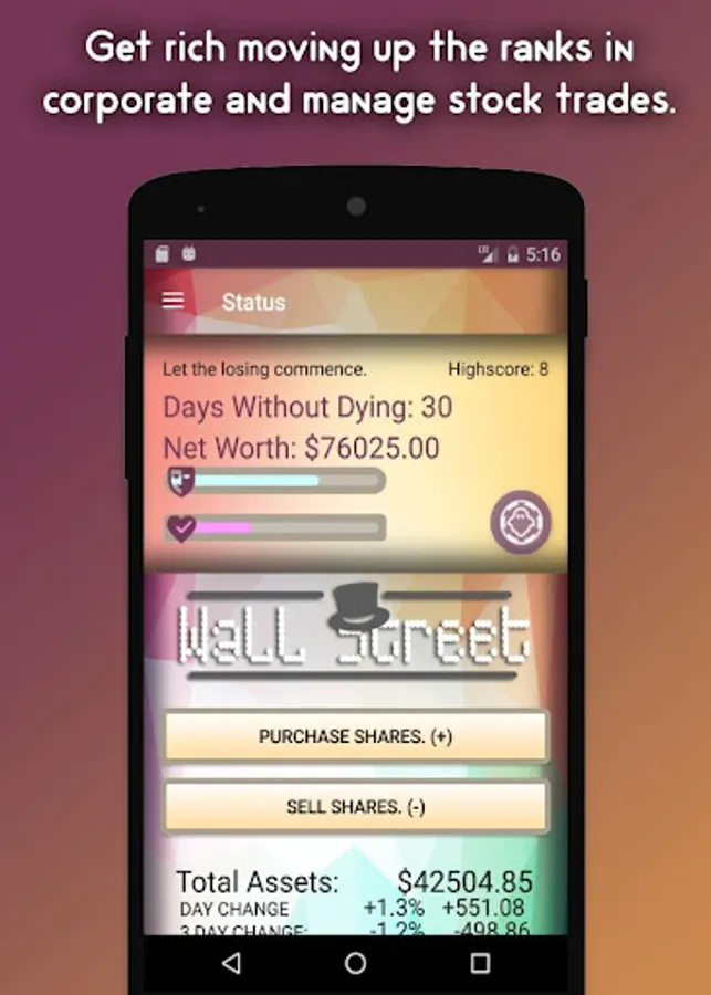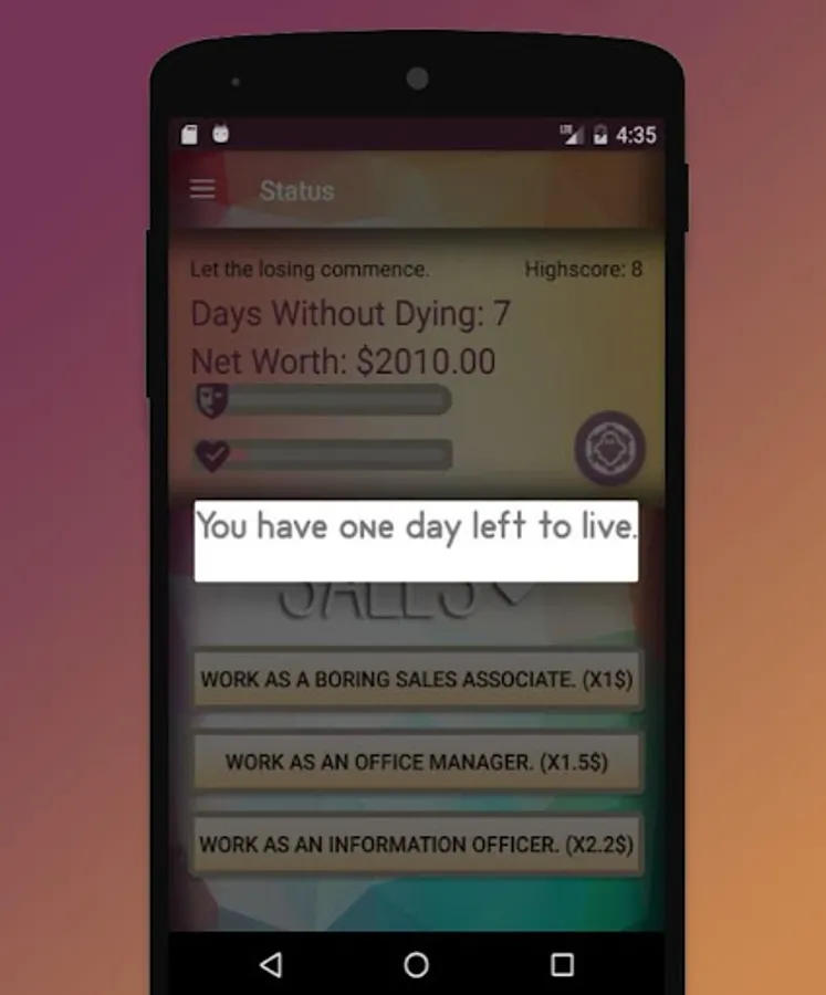 ยซ You can go on luxurious vacations filled with kidnapping bandits, grow influence within your company, start a family, or just survive paycheck to paycheck. The longer you play the game, the harder it becomes to maintain your health and happiness. How long will you survive? ยป
