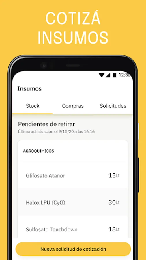 Supplies: Look at your Purchase History and Request a Quote for the purchase of Supplies from the App