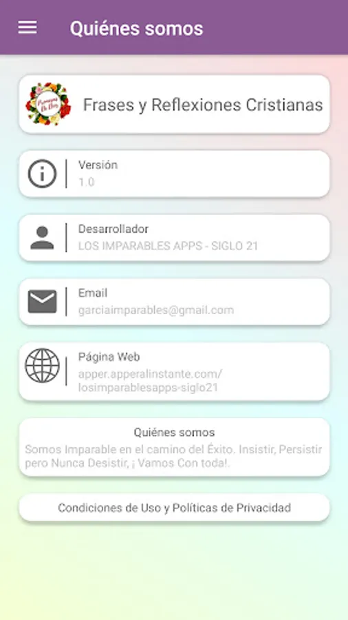 You are in the right place, we have designed an App with the best content and message that can reach a person who is in his worst moment, in the same way to the person who is in his best moment also there, discover the application you will not regret downloading it.