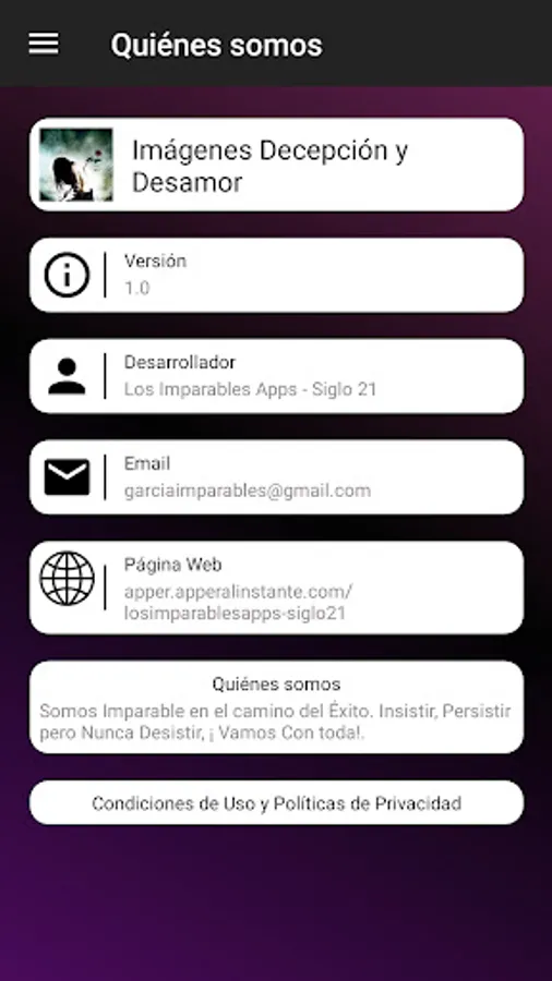 NOTE: The entity that owns the application informs that it contains images that have been collected, selected and downloaded from free Internet sites, these images are in the public domain since they are not identified by any watermark, symbols or other information that indicates the existence of rights of exploitation reserved in this regard. Despite this, a clear will to respect the rights under Royal Legislative Decree 1/1996, of April 12, which approves the revised text of the Copyright Law, and compliance with the obligations imposed by the Law 34/2002, of July 11, of information services, society and electronic commerce, the creator of this application calls any natural or legal person who is the owner of any of the images contained therein, accredit by email to garciaimparables@gmail.com, the creator of the application committing to the immediate elimination of said image after verifying, where appropriate, the ownership of the protected image.