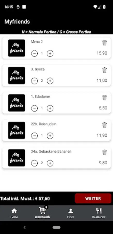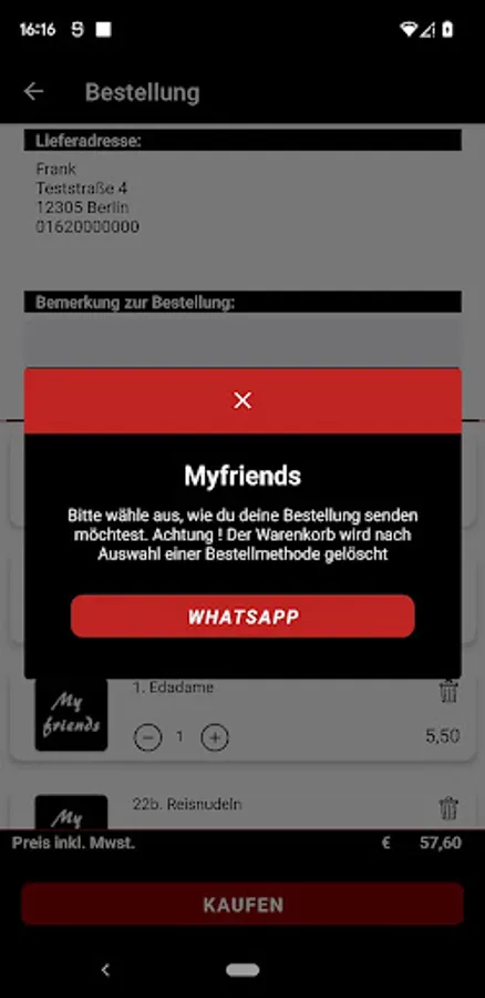 Take advantage of our reliable delivery service. Our delivery service is for Berlin Lichtenrade, Marienfelde, Großzüge, Mahlow, Buckow and Mariendorf. Simply order online and conveniently with our Myfriends delivery service APP. You can order via Whatsapp.