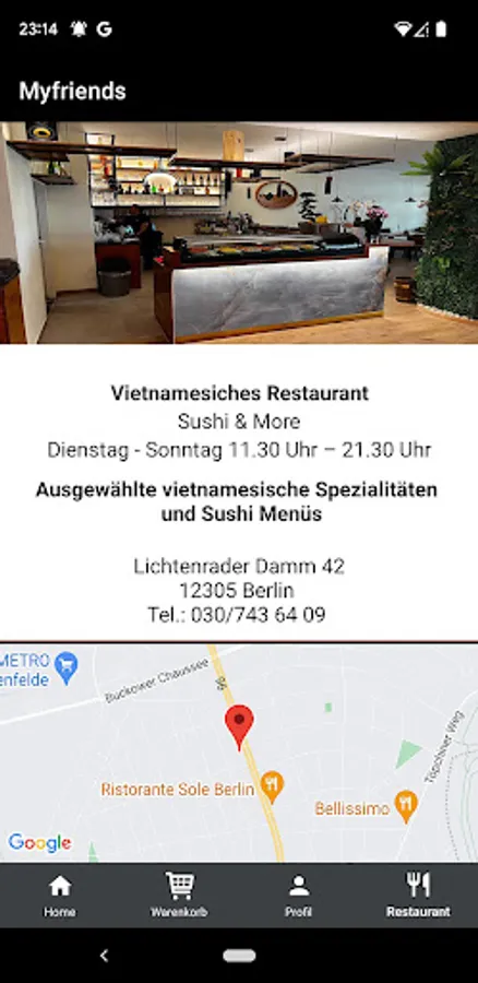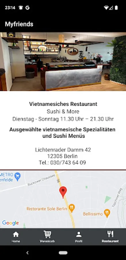 As a Vietnamese restaurant in Berlin, Myfriends Restaurant offers you a delivery service in Berlin Lichtenrade. We deliver to you from Tue - Sun 11.30 a.m. - 9.30 p.m. with delicious Vietnamese specialties and sushi. Myfriends Lichtenrade Berlin looks forward to your order.
