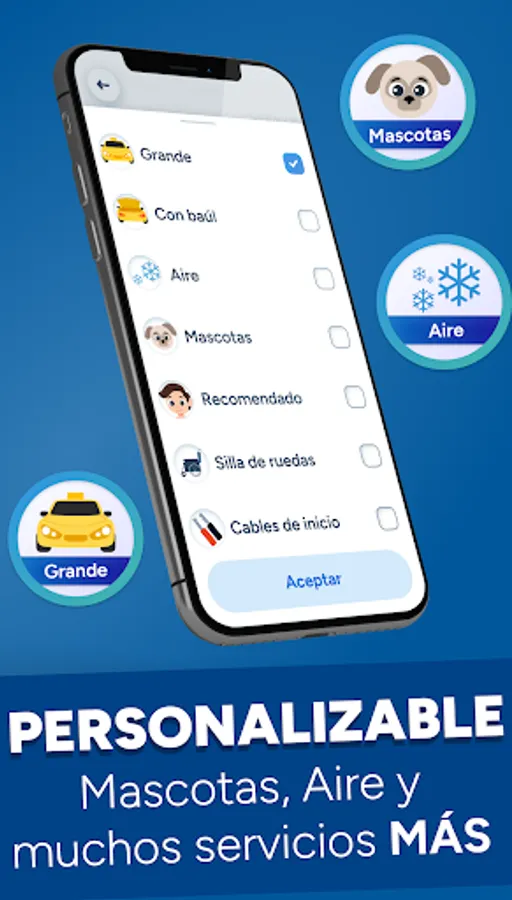 La interfaz de usuario intuitiva de la aplicación toma tu ubicación actual. Y tú historial de servicios permitirá traer direcciones inteligentes de lugares previos de dónde has solicitado un servicio. Además, puedes personalizar el vehículo de acuerdo a tus preferencia y necesidades.