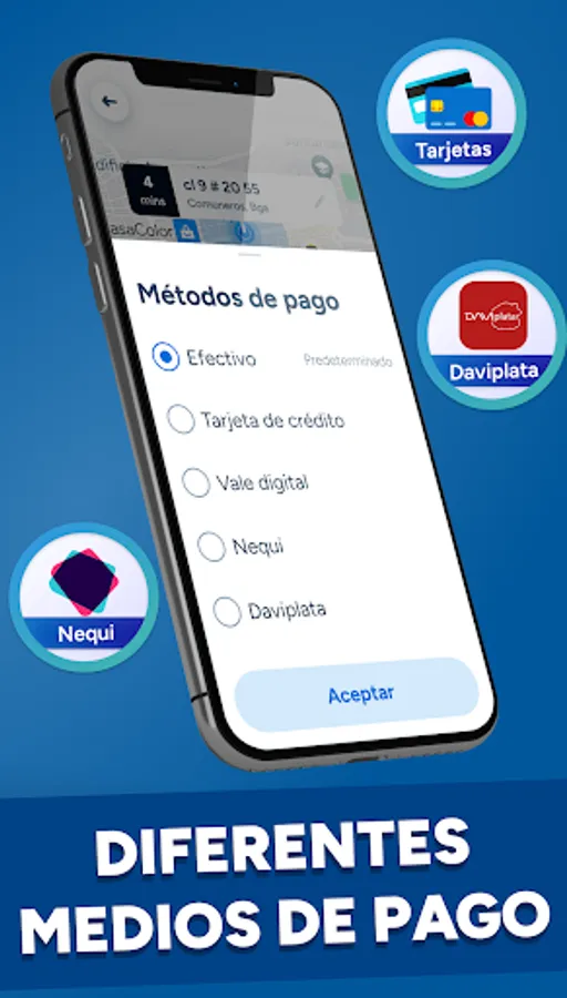 Además, los pagos se realizan de forma segura a través de la aplicación utilizando tarjeta de crédito o medios digitales como Nequi o Daviplata, eliminando la necesidad de efectivo y brindándote una experiencia de pago sin complicaciones.