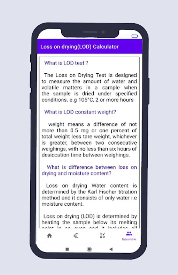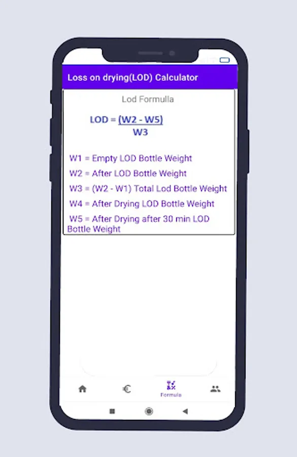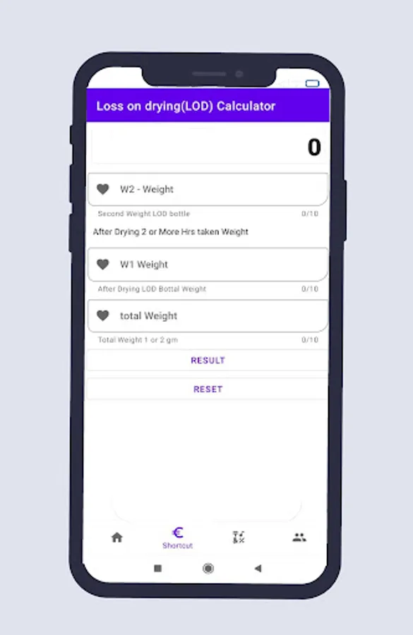 Loss on Dry (Wet lab Calculator mostly use in pharma and other company)