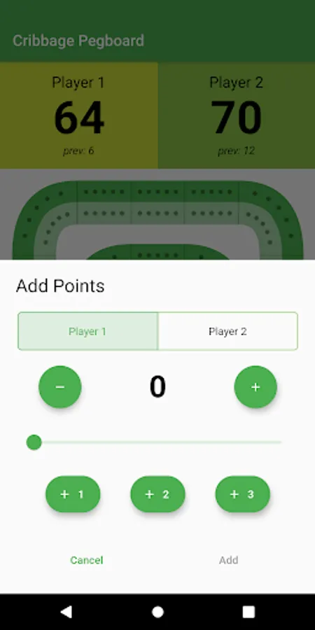 Leave your pegboard at home and use this application to keep track of your cribbage score. Allows for easily adding each players score and displaying the score on a virtual pegboard. Works for two player games only and has multiple themes to choose from including a dark theme.