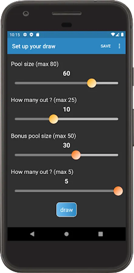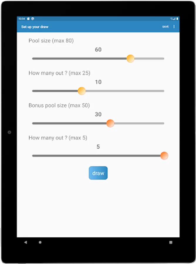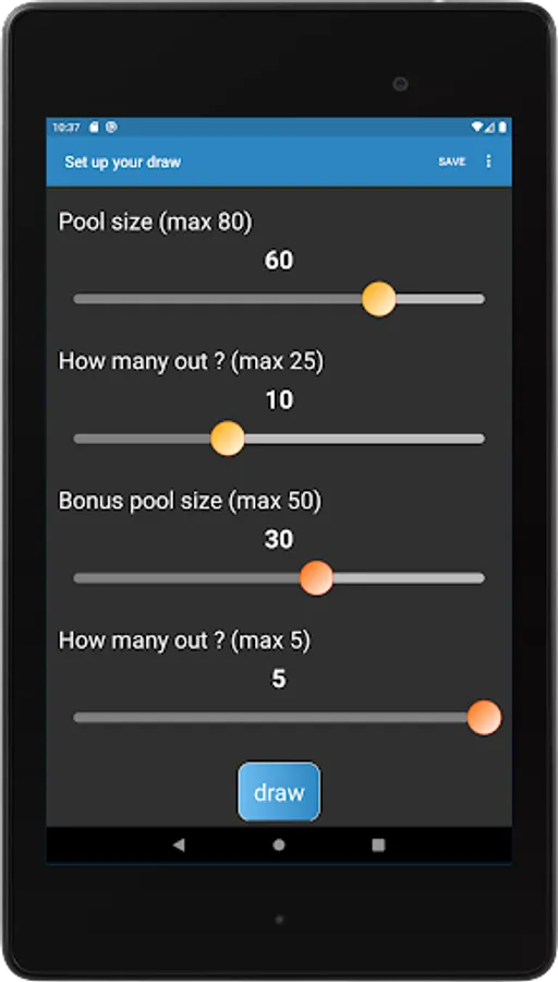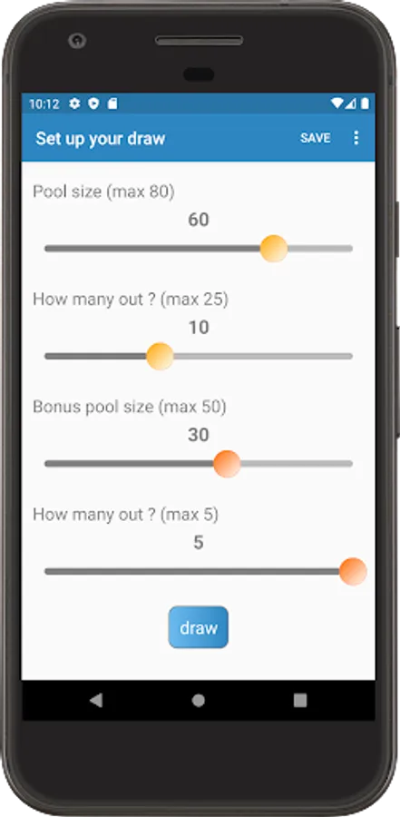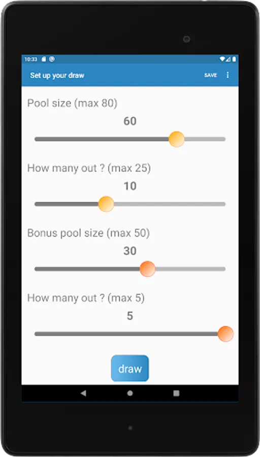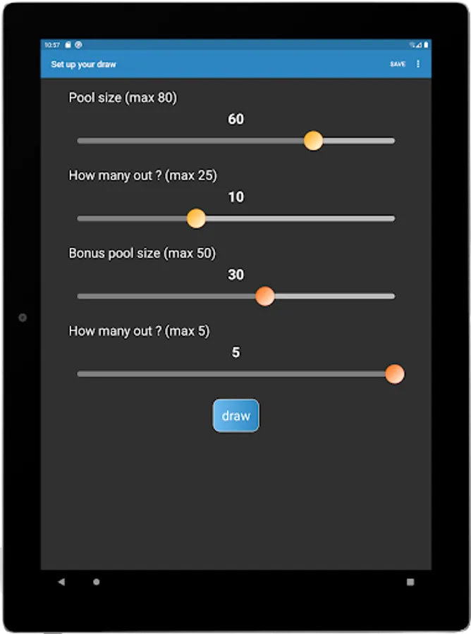 Save frequently used draws and your favourite draw results for future use. Configure draw setups in app's settings. Share your draw results with friends and family.