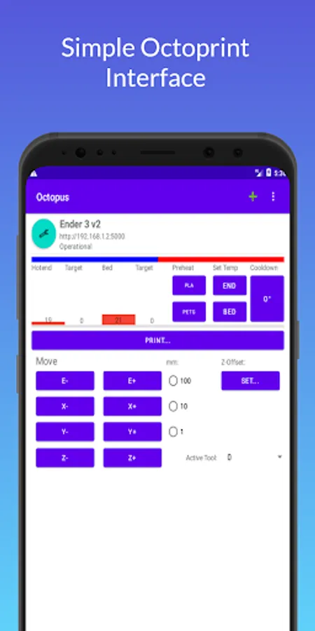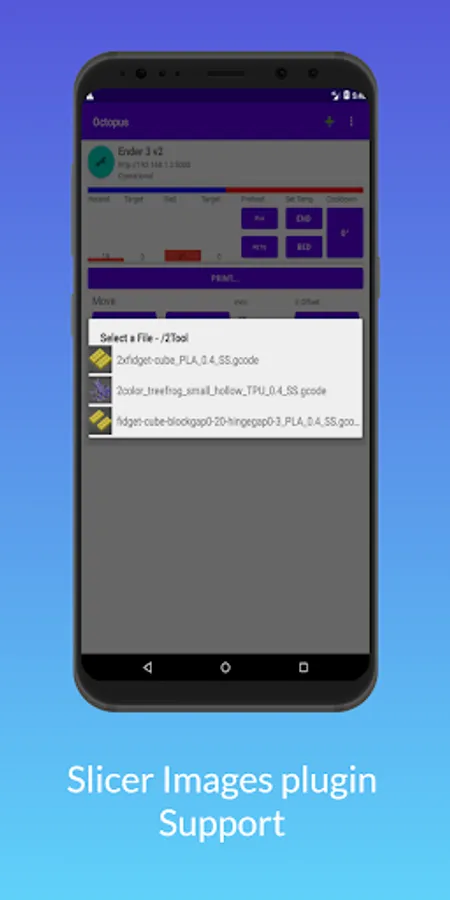 Octopus for Octoprint allows you to connect and control Octoprint from your phone or tablet! Multiple Octoprint instances are supported - one easy app and interface for all your 3D printers. It even integrates with the Spool Manager plugin for tracking your filament use, and the Slicer Thumbnail plugin for showing a preview of your model.