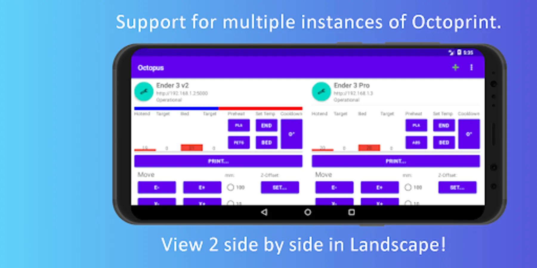 I developed this for my own personal use case where I wanted easier control over my printers while I was setting them up for prints. I found the Octoprint interface slow and the UX poor, was irritated that most other apps that support multiple printers cost a lot of money, and frustrated that I couldn't figure out how to set Z-Offset directly on one of my printers. This app solves all my problems, and when running on a Tablet in Landscape mode, I'm able to control both printers at once without excessive scrolling, app switching, or tab switching.