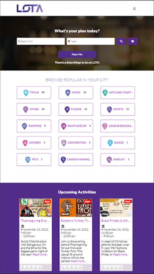 With Lota you can find the best things to do around you hosted by people in your area. If it’s date night, family day, or a lazy Sunday you can find the perfect thing to do on Lota because there’s a lotta things to do on Lota.