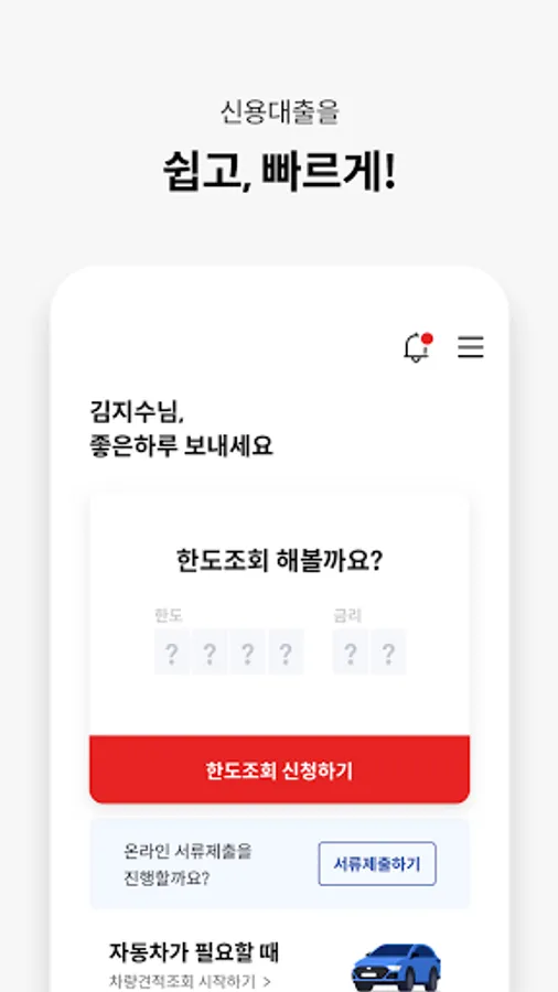 • Check the additional limit and interest rate and deposit immediately upon completion of the application