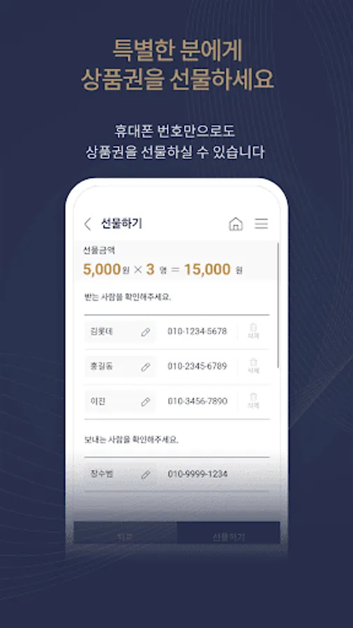 Gift vouchers can be gifted with just a mobile phone number. You can present it to up to 10 people at a time, and if you just want to receive it, you can refuse it within 2 weeks.