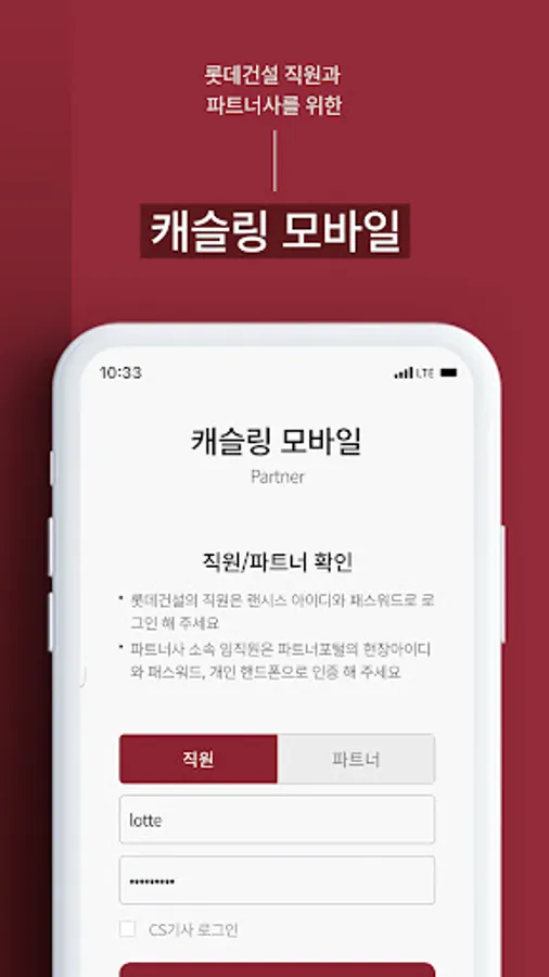 This is an apartment AS mobile processing application provided by Lotte Construction Co., Ltd. for employees, partners, and AS drivers.