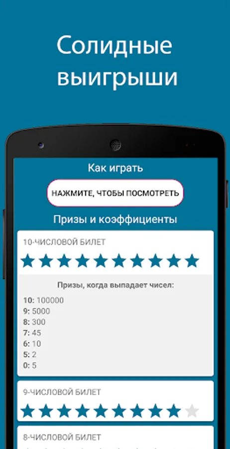 If you are a lover of lotteries, then this application is just for you! Our application is similar to sports lotto, the game has been popular for a very long time.