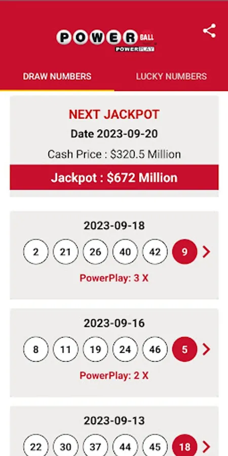 National Powerball Draw Result Screenshots