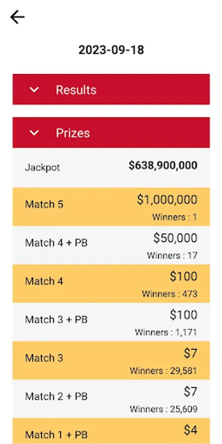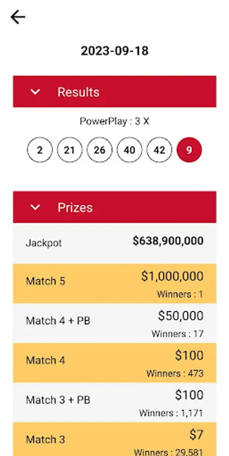 By downloading our app, you will always get all the information on the next powerball draw result. Swipe left the feature graphic on the home screen to see the details for each draw.