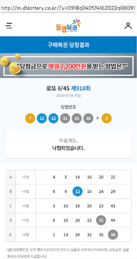 The lottery number is generated by an algorithm and the lottery winning number can be checked using a QR code.