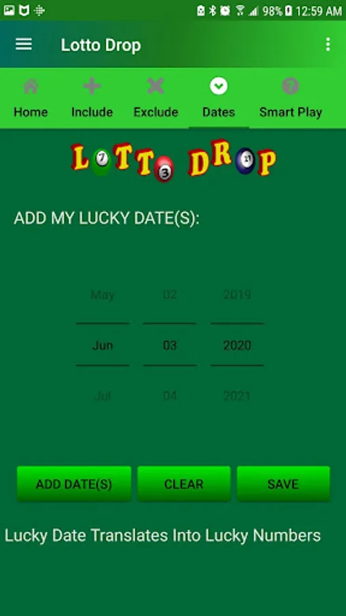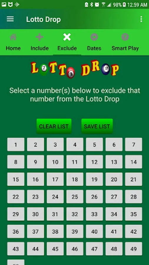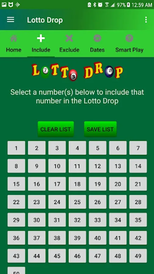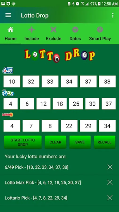 Using our app, you can customize the way you pick your lucky numbers by using the different features that is available such as exclude and include numbers, birthday numbers, and using statistics called smart play.