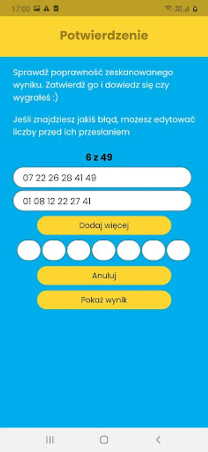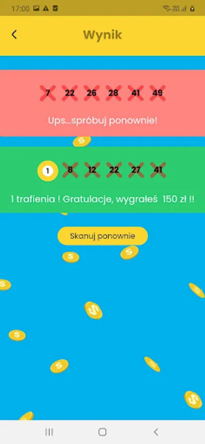 Otwórz kamerę w telefonie i zeskanuj numery. Po kilku sekundach pojawi się komunikat ile trafiłeś.