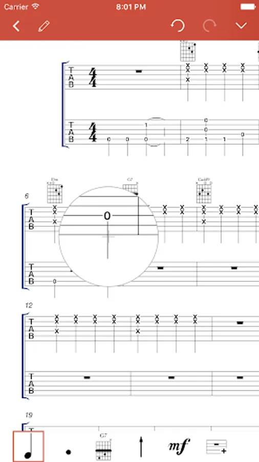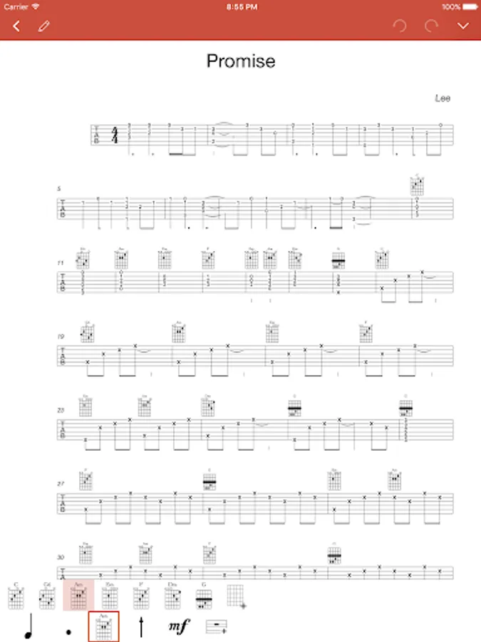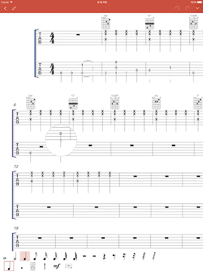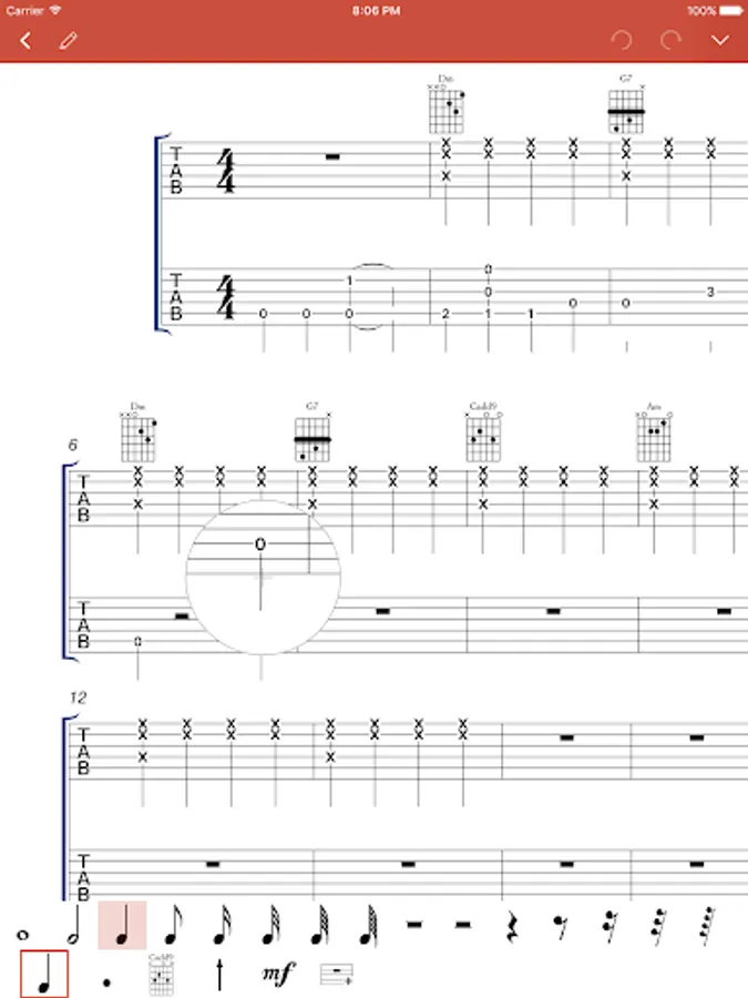 A great guitar tabs and chords notation app. For any guitar music lover, Guitar Notation gives you the ability to read, compose, edit, and playback guitar sheet music scores. With it you can be a talented composer and great musician anywhere. As long as you have a little knowledge of sheet music, you can write music composition simply by touch and move. Of course it could help you to learn guitar notations. It can handle multi-track tabs, also it supports for chord chart configuration. With the help of it you could easily record the flashes of inspiration wherever they strike. Are you ready to compose music in a simple way?