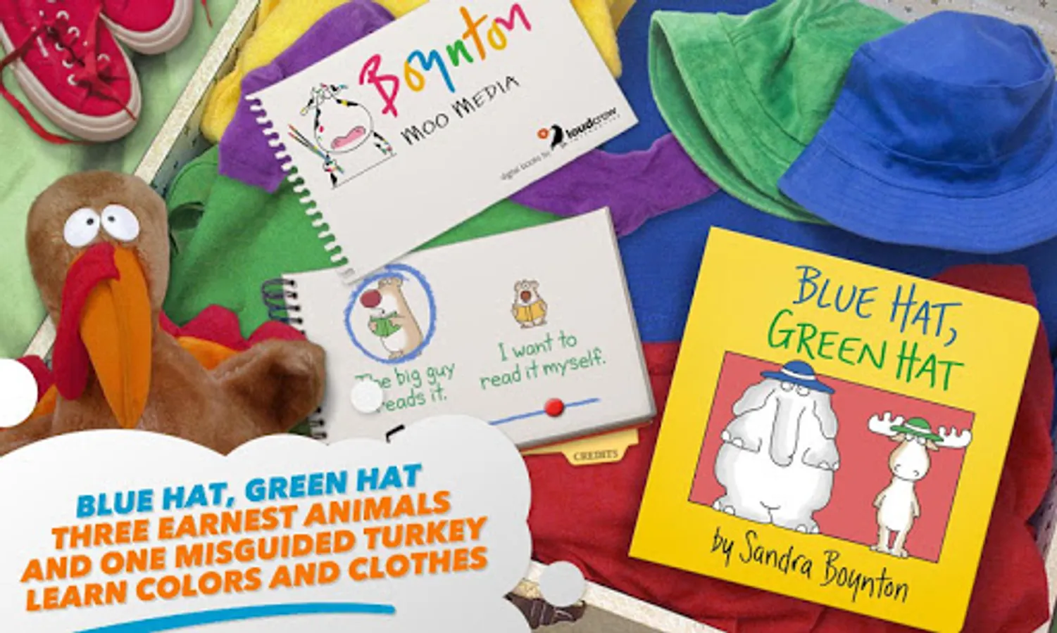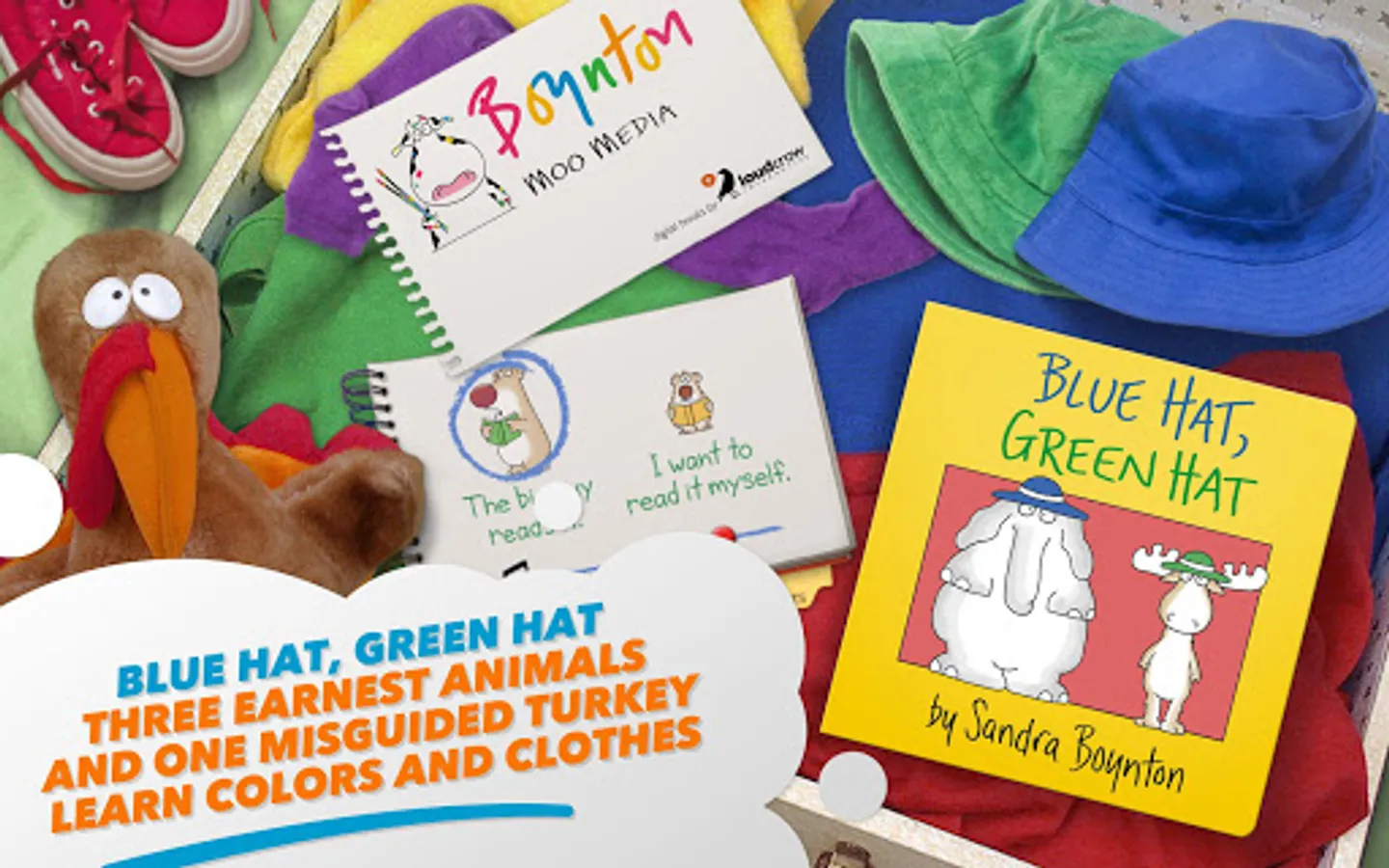 - Blue Hat, Green Hat -Three earnest animals and one misguided turkey learn colors and clothes. Though admittedly, the turkey never quite gets the hang of it.