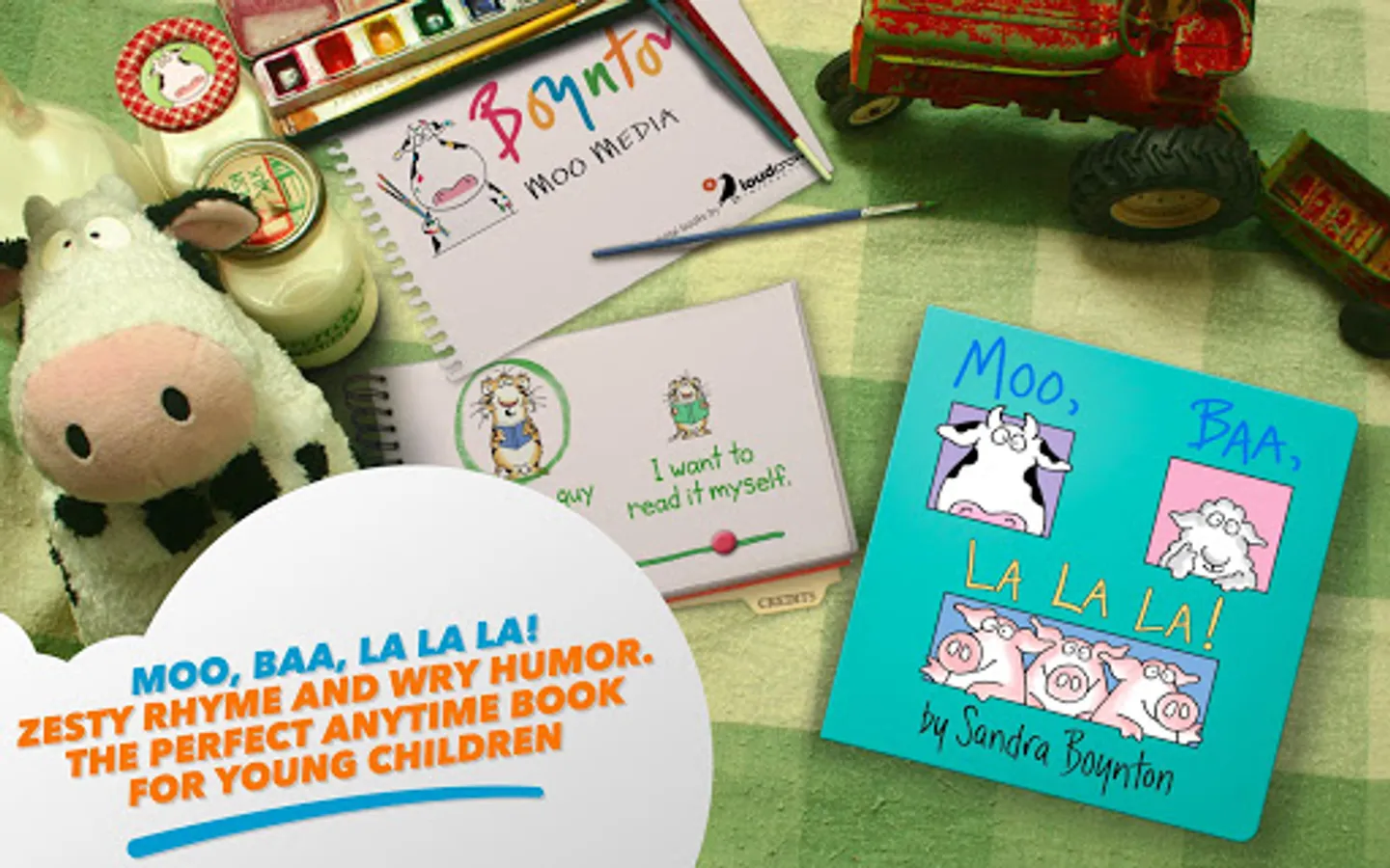 - Moo, Baa, La La La! - Written with zesty rhyme and wry humor, and illustrated by the author with those droll Boynton characters, it's the perfect anytime book for young children