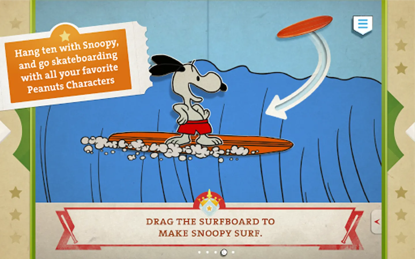Touch, tilt and swipe your way through tons of summer fun with your favourite Peanuts characters! Take to the mound with Charlie Brown, swing a bat with Linus and make a very special uniform with Lucy and the rest of the team. And don’t forget to hang ten with Surfing Snoopy and practice your skateboarding tricks with the gang!