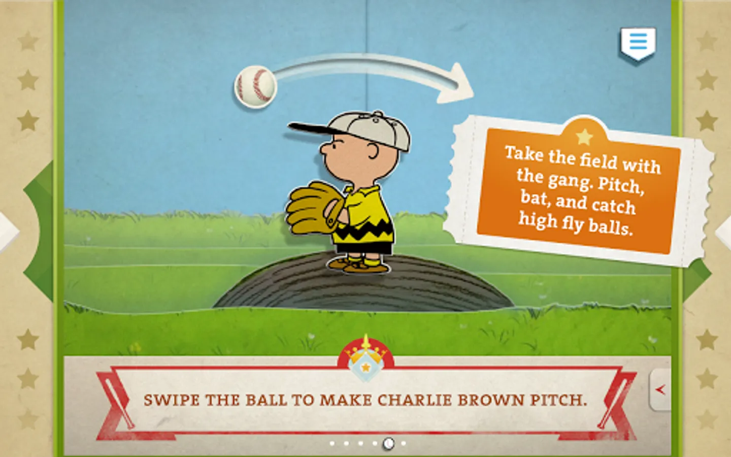 ● Pitch, bat and catch high fly balls with the Peanuts gang
