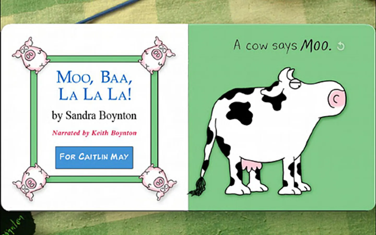 * The second Boynton Moo Media book app (following their top-selling debut, The Going To Bed Book app), venturing far beyond what an e-book experience can offer