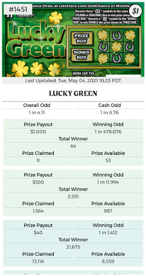 Details the playing odds, how many prizes have claimed, and how many prizes are still available.