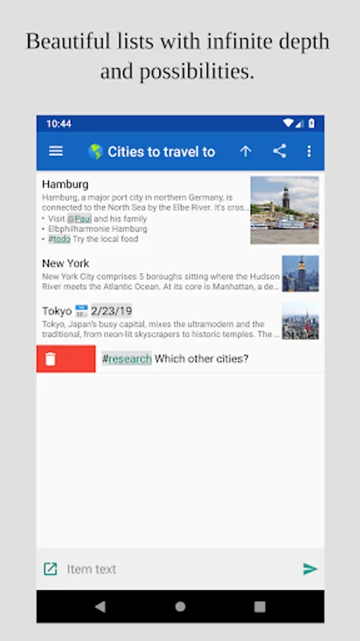 Quick Dynalist transforms your mobile phone into your extended memory: See your lists, add & edit new items amazingly fast, search & filter for anything.