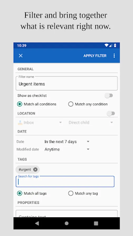 - Create permanent filters that show you exactly what you need across your Dynalist