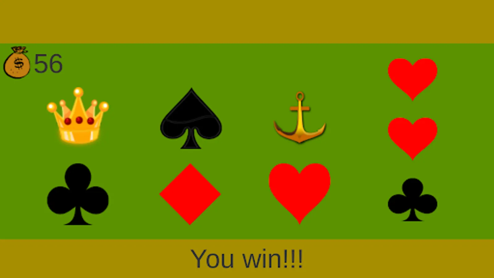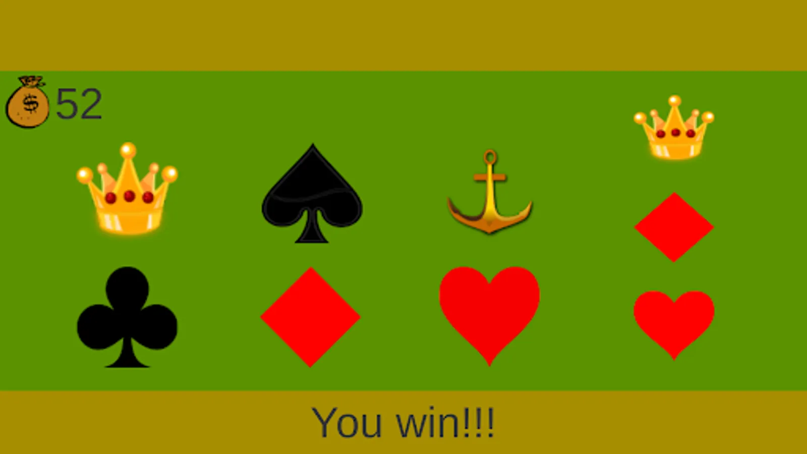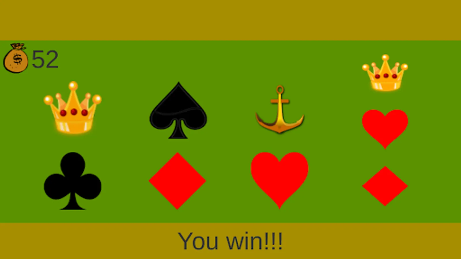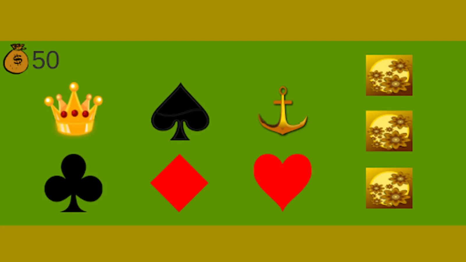 Three dices with symbols representing the crown, anchor, heart, diamond, spade and club are thrown on the right side of the screen.