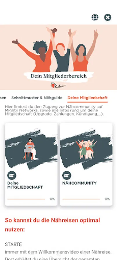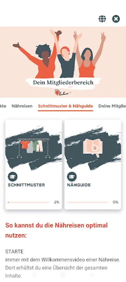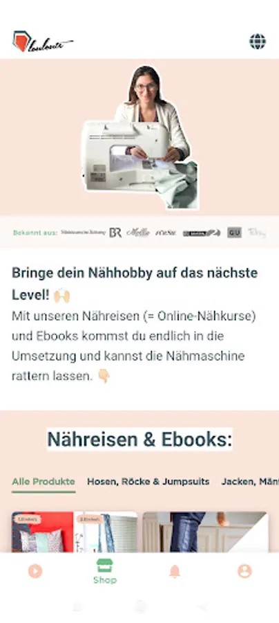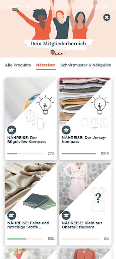 In the app you will find currently available sewing programs as well as your booked sewing content. This gives you access to the louloute online sewing studio from anywhere.