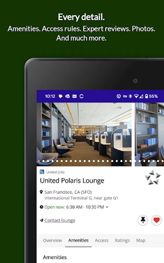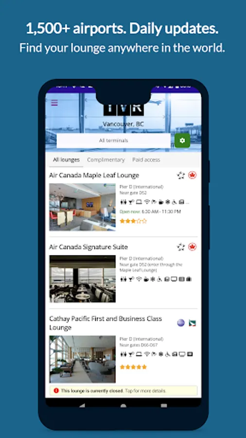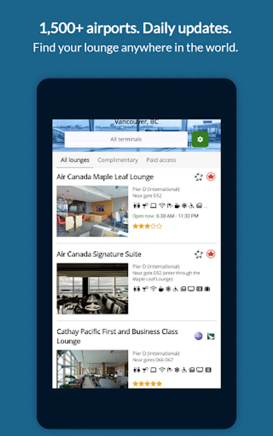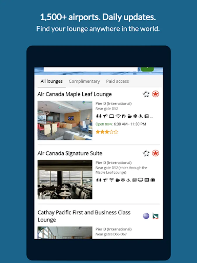 - Get the lowdown on every lounge: location, access rules, opening hours, amenities, food and beverages, and more.