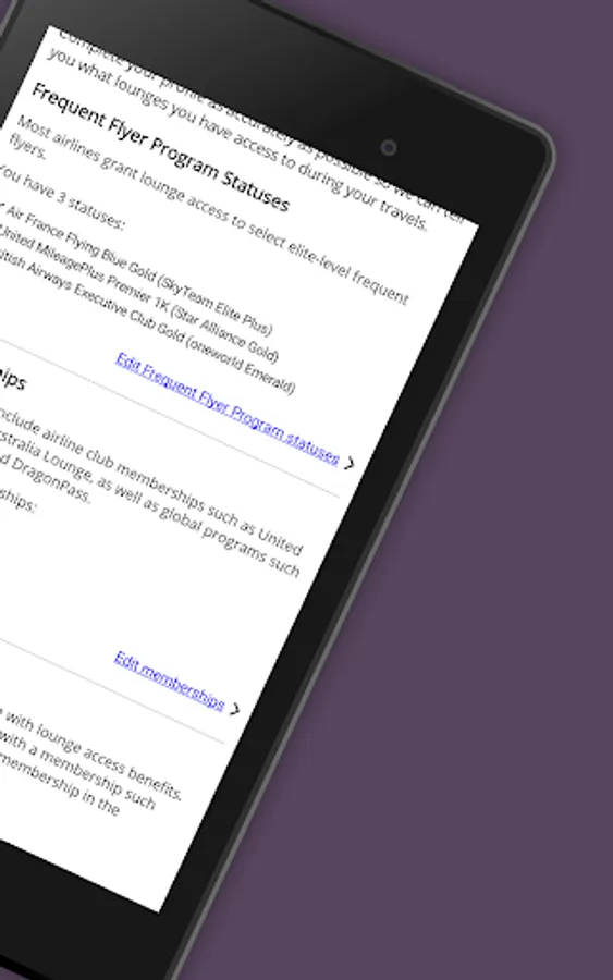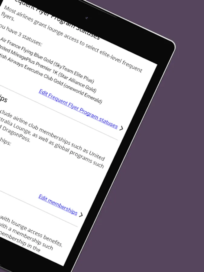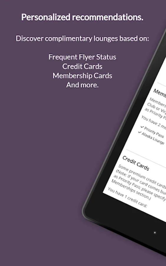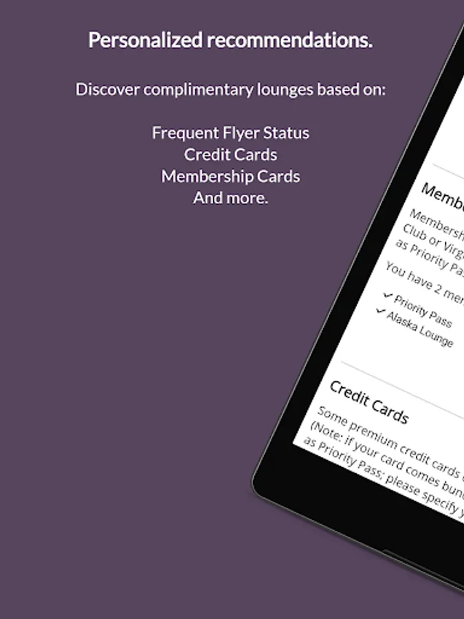 - Create a profile and add your Frequent Flyer status, credit cards, and memberships. We'll tell you which lounges you have access to.