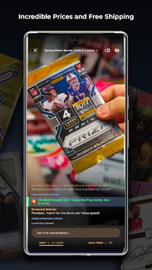 Everything takes place in-app from buying card packs, seeing them opened live, talking live to shops & other card collectors.