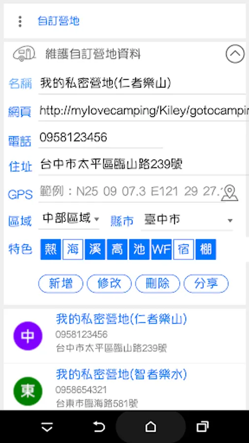 - Camp Information Applications are pre-built limited, if not your favorite campsite owners, can build customized information through the camp. Of course, we also welcome you to share owners do not begrudge the camp, through the "sharing" to share to the majority Royu.
