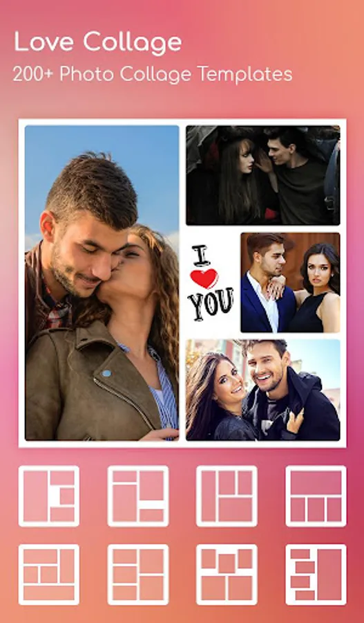 > Create Love collage photo frames upto 9 photos with using different photo grid styles.